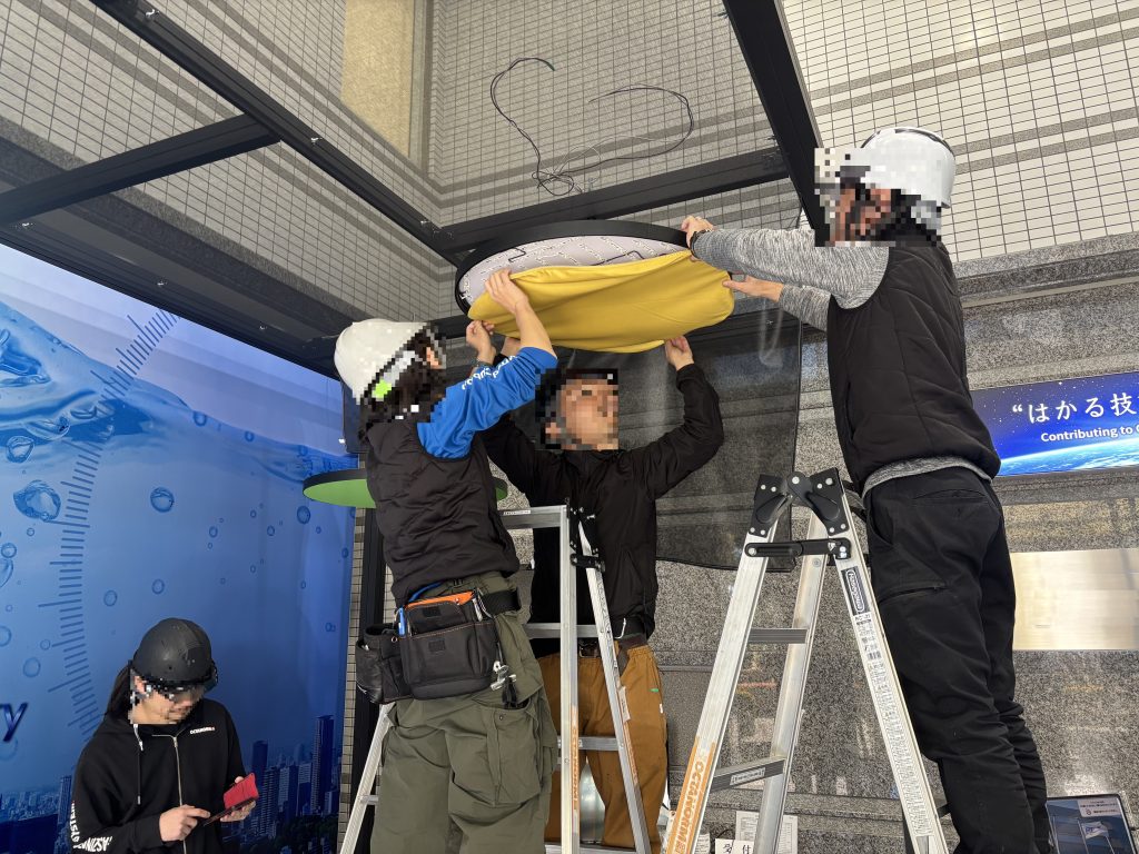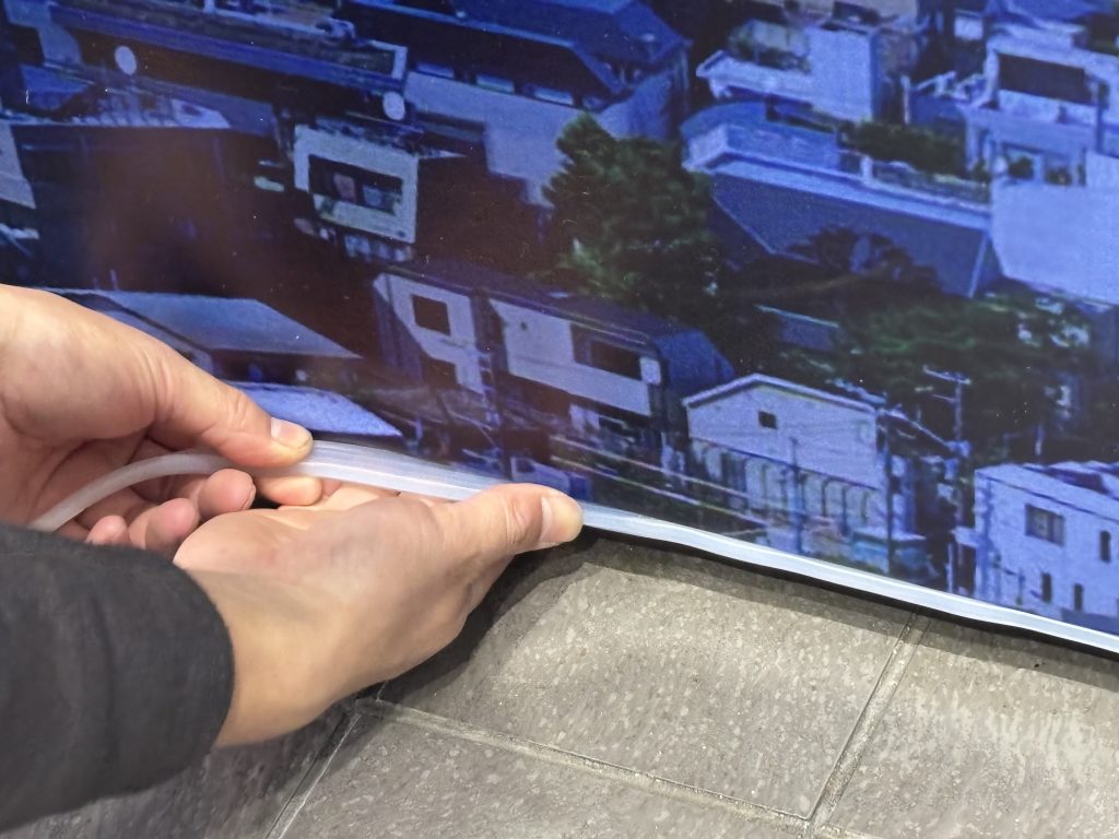 ファブリックサイズに手違いがあったため、急遽現場でプッシュインシリコンを使って対応