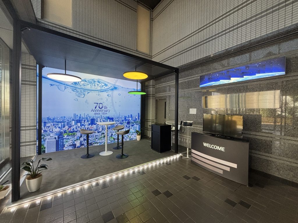 受付後の待合時間、訪れた人にモダンで洗練された会社のイメージを持ってもらえる空間となりました