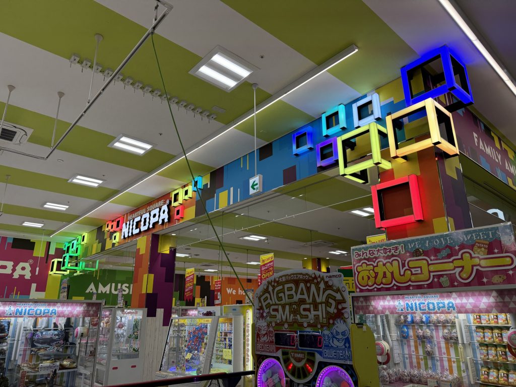 ゲームセンターNICOPAさんのエントランス装飾として常設の利用。